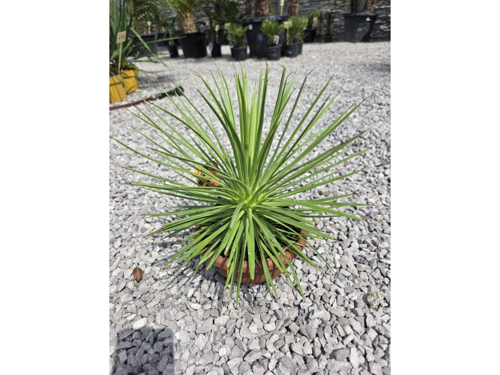 Rastlina vytvára hustú, guľovitú ružicu s úzkymi, tvrdými, tmavozelenými listami dlhými približne 10 až 20 centimetrov. Každý list je zakončený jemným, ale ostrým hrotom. Tvar rastliny je mimoriadne symetrický a pripomína zelený ježko – preto sa často využíva ako dominantný tvarový prvok v minimalistických výsadbách. V závislosti od svetla a podmienok sa listy môžu sfarbiť do sivozeleného až bronzového tónu.