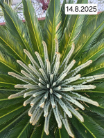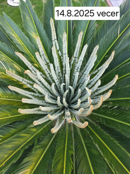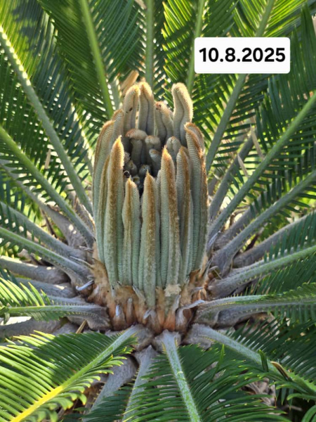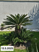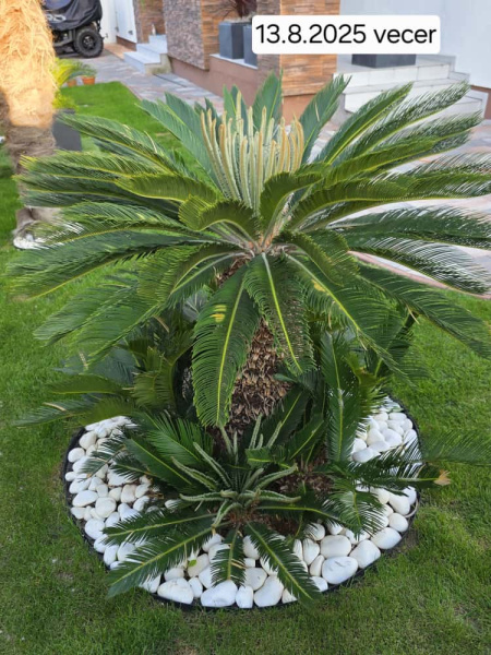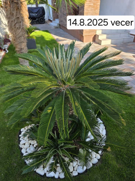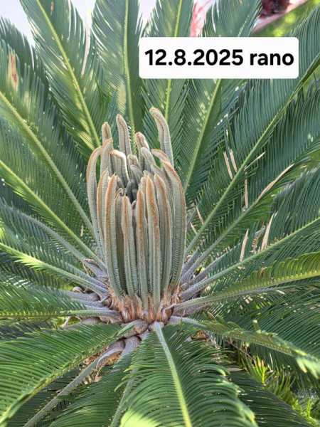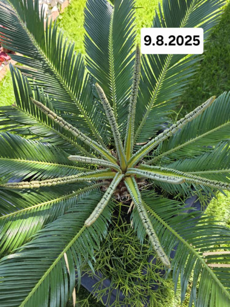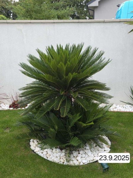 Náš starší cykas vo voľnej pôde vytvoril v sezóne 2025 až 50 nových listov.