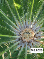 Cycas revoluta tvorí nové listy raz ročne, najčastejšie v lete (jún – júl).