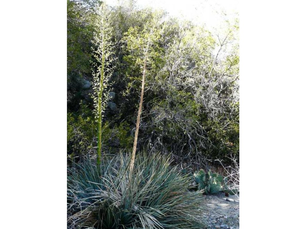 Hesperoyucca whipplei ‘Caespitosa’ kvitne po niekoľkých rokoch pestovania. Vytvára impozantnú kvetnú stonku vysokú 2 – 4 m s množstvom zvončekovitých kvetov.