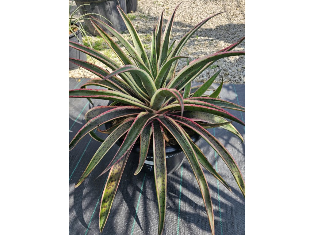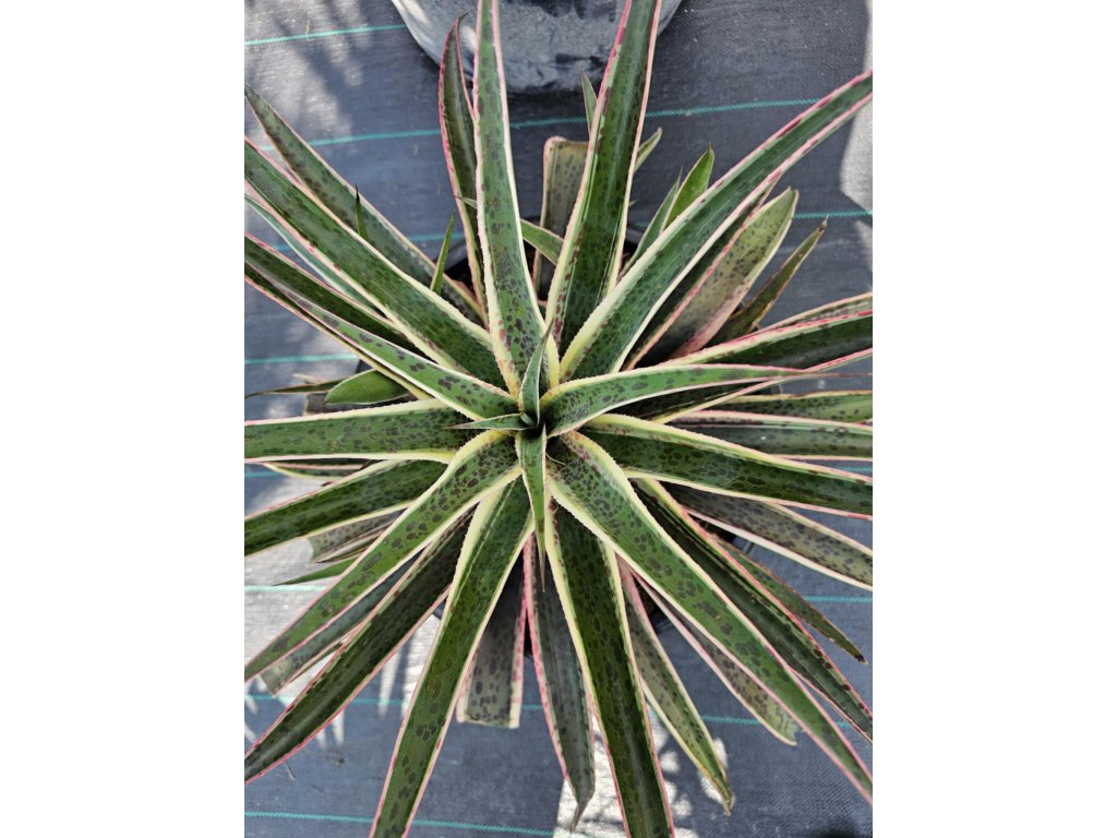 Farba: Modrozelené až šedozelené listy s krémovo-bielymi pruhmi a tmavými okrajmi