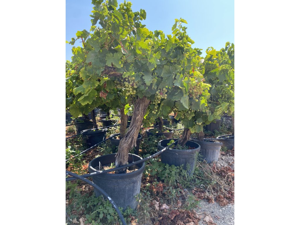 Vitis vinifera Moscatel biely na starom hrubom kmeni (Old Trunk) je prémiový vinič určený pre zákazníkov, ktorí nechcú čakať roky, kým rastlina získa silu, charakter a estetickú hodnotu. Nejde o bežnú mladú sadenicu, ale o dlhodobo pestovaný, vyzretý vinič s masívnym, prirodzene formovaným kmeňom, ktorý nesie viditeľnú stopu času.